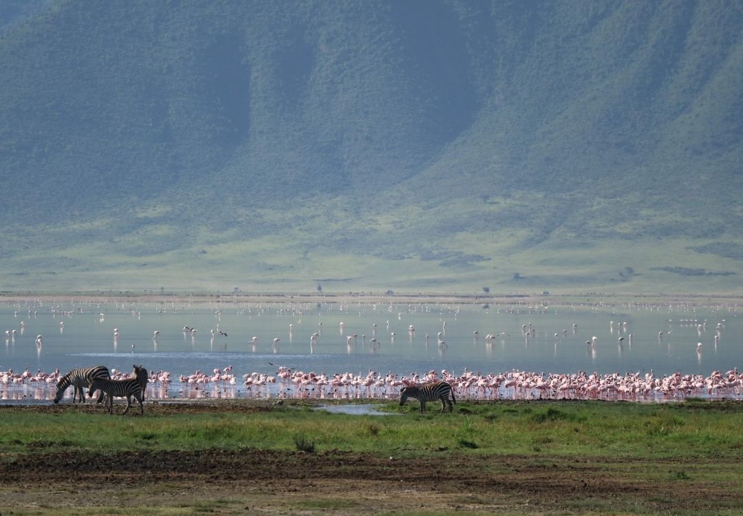 Continue exploring the crater’s diverse habitats—grasslands, forests, marshes, and the alkaline Lake Magadi—rich in flamingos and other water birds.